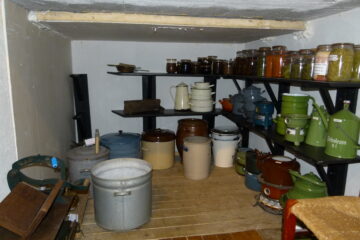 Kelder: de boerderij inrichting, de kaarsenmakerij, expositie blikken trommels, landbouwgereedschap, het hoekje voor de imker en tijdelijke exposities.