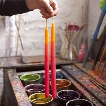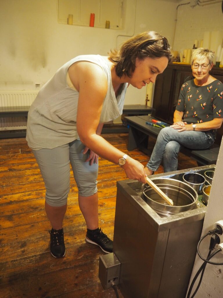 Onder begeleiding van onze kaarsenmaker wordt in de workshop 1 dubbele kaars gemaakt volgens de dompelmethode.